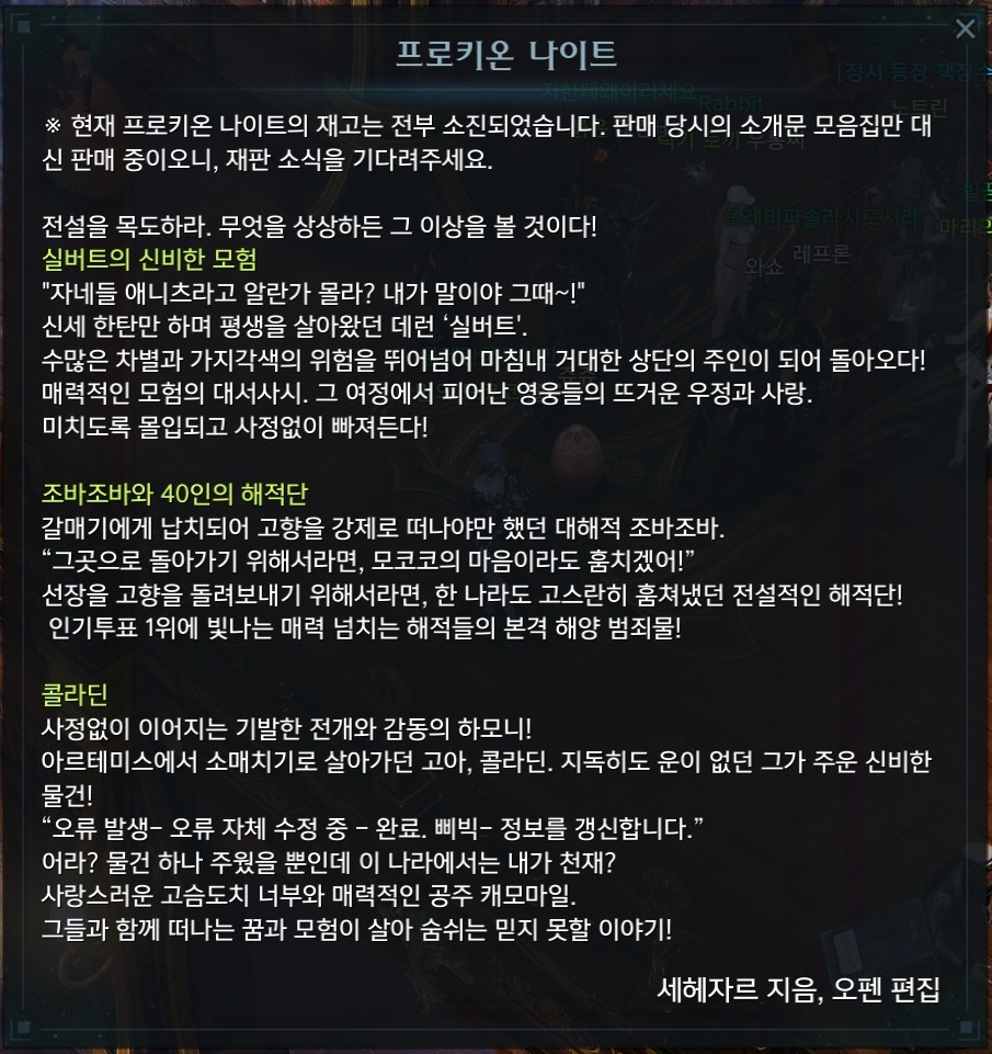 (책방npc가 파는 책 목록은 정시마다 달라집니다.)